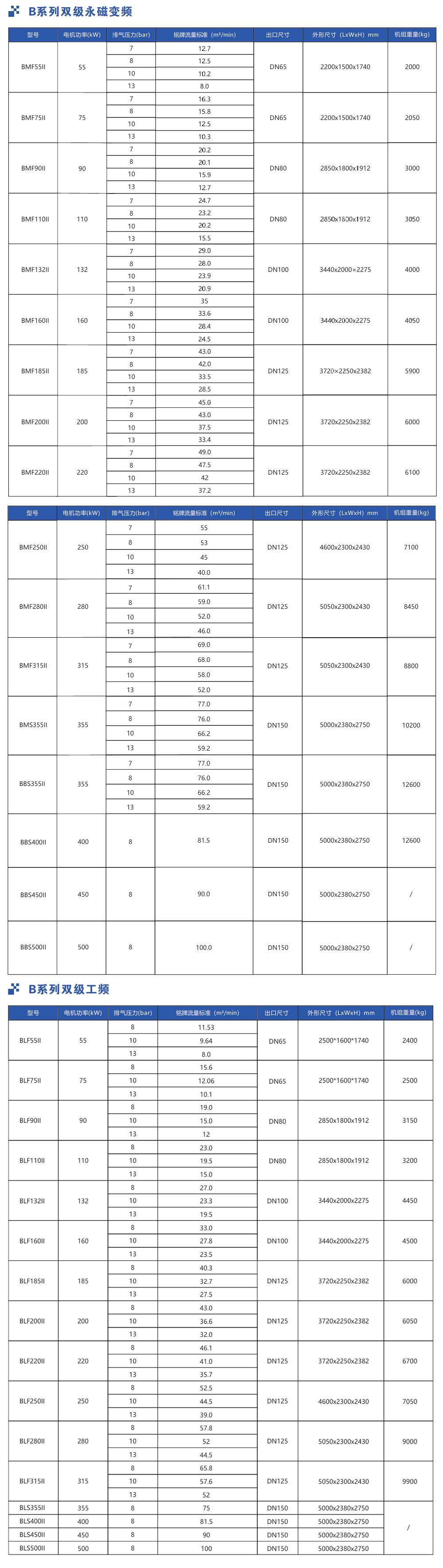 雙級空壓機B系列 55~500KW